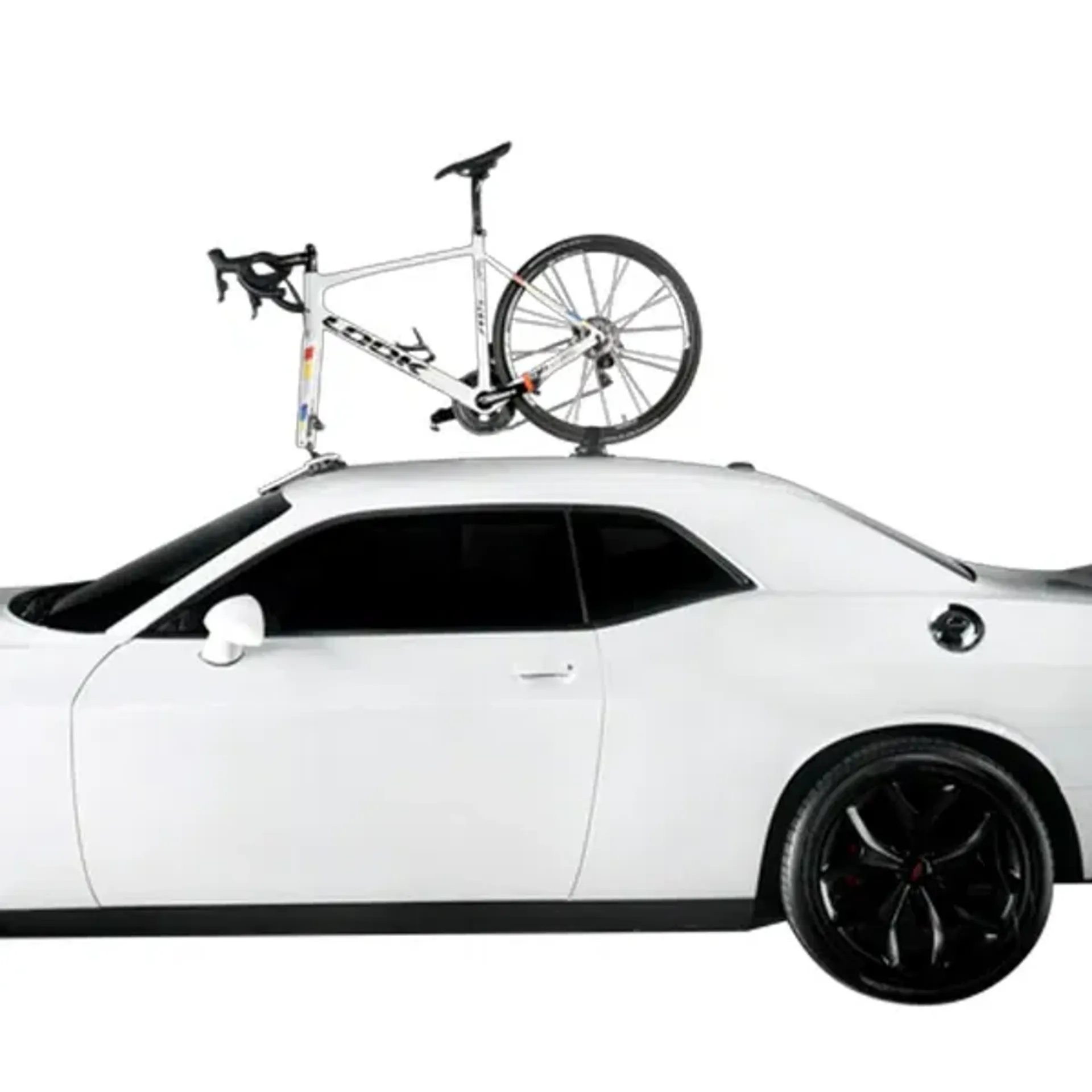 An additional vacuum cup for the rear wheel features a 22" strap for securing virtually any back tire. Small and light enough to fit into a bike bag or carry-on luggage for you super adventurous types who travel with your bikes. Probably the easiest rack in the world to install, and removes in just seconds, all without marking your car. Fits on virtually any car. Some assembly required.