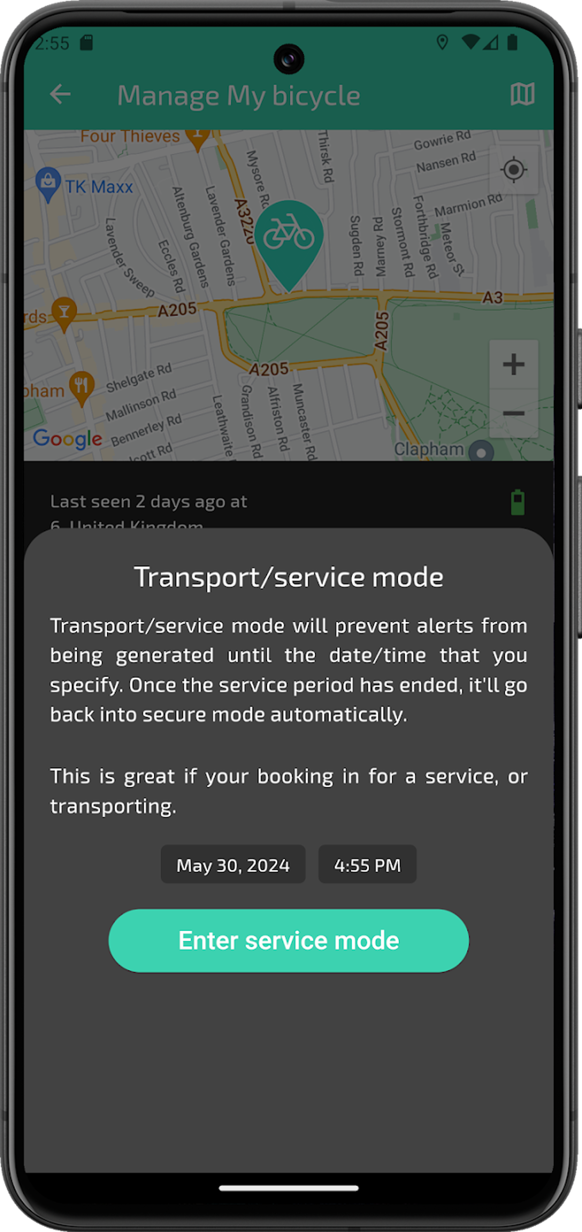 • Self maintaining - CycleTrac has its own internal battery, so it doesn't rely solely on the E- Bikes own battery for power. The internal battery lasts for up to 30 days.