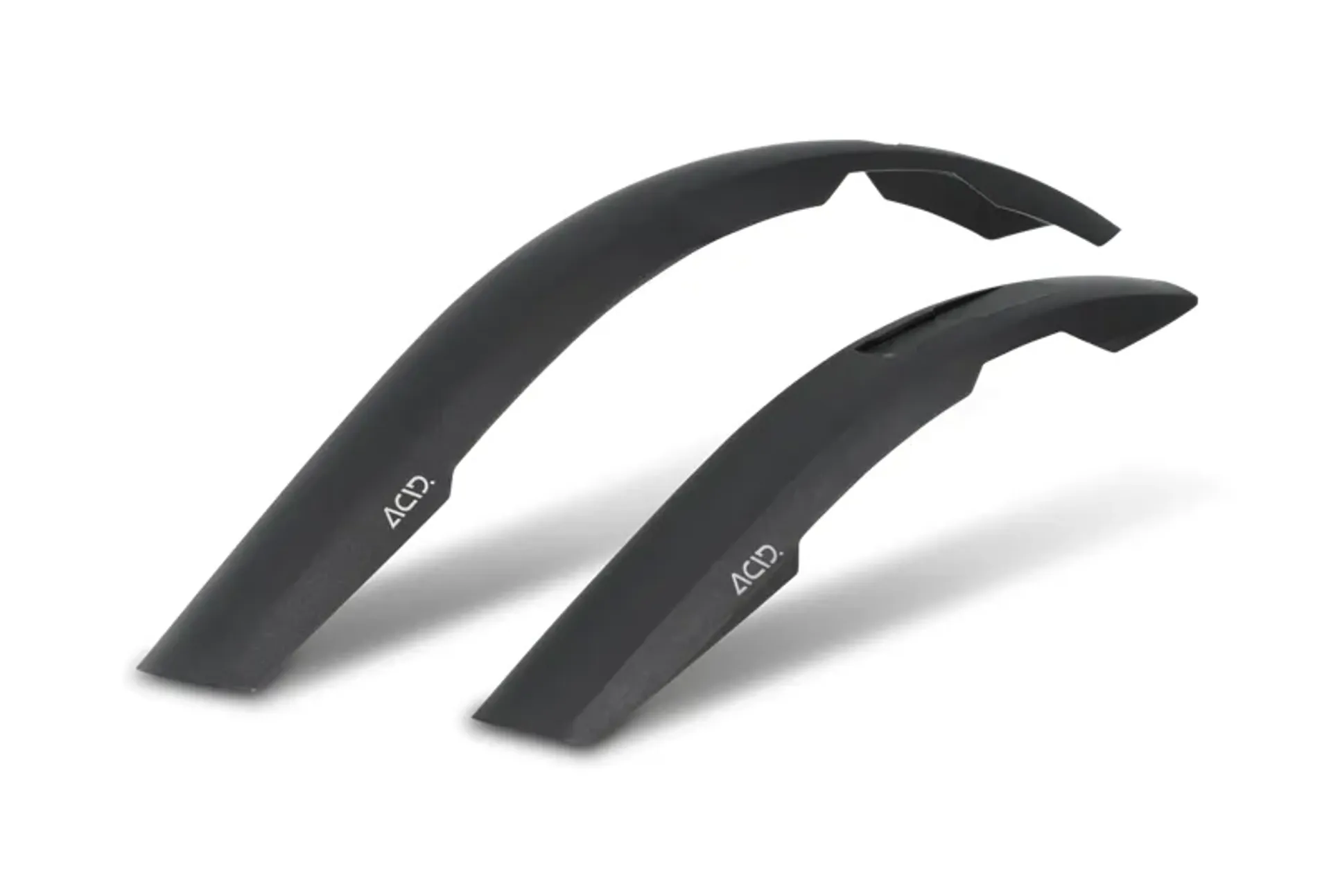 The new ACID Mudguard Set MUD ROOKIE redefines the design of kids' mudguards with sportier aesthetics that slot seamlessly into our mudguard range. The mudguards attach to CUBE bikes using a seat stay adapter with an adjustable angle. For all other bikes, a classic universal bracket is included. Side cut-outs mean they're also compatible with V-brakes. This set fits 24in bikes up to a maximum tyre width of 2.25in.