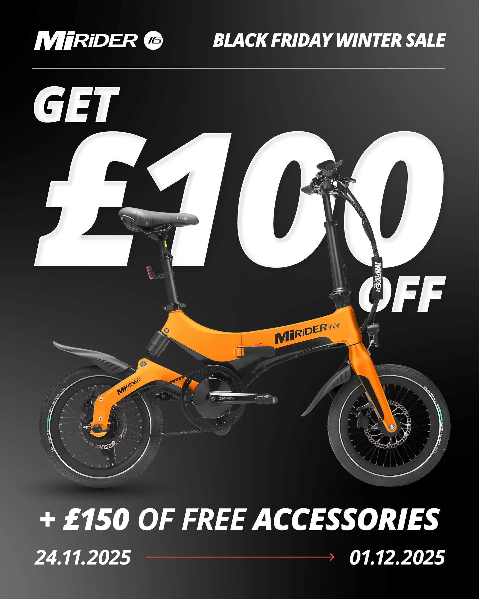 The award winning MiRiDER 16 folding electric bike