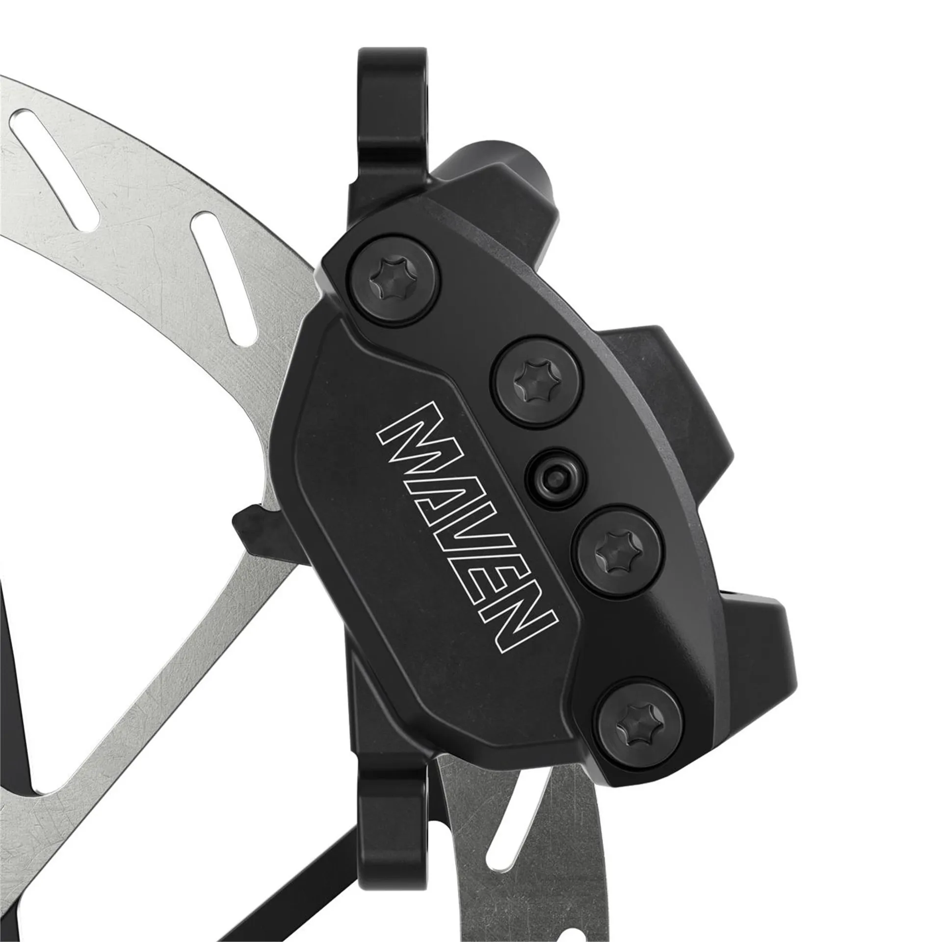 This high-power brake system is engineered to set the benchmark for modern mountain biking, delivering the control, consistency and confidence required on increasingly demanding terrain. Maven’s re-designed SwingLink architecture provides smoother power delivery with lighter initial engagement, reducing fatigue and improving modulation. The stiff 4-piston caliper uses 18 mm phenolic pistons for exceptional heat management, ensuring braking performance remains consistent from the first corner to the last. Tool-free Reach and Contact Point Adjust allow fast, precise personalisation, while the mineral-oil system provides reliable performance with low maintenance demands. Finished in gloss black anodising with black hardware, it suits stealth-style builds across gravity, enduro, trail, and E-MTB setups.